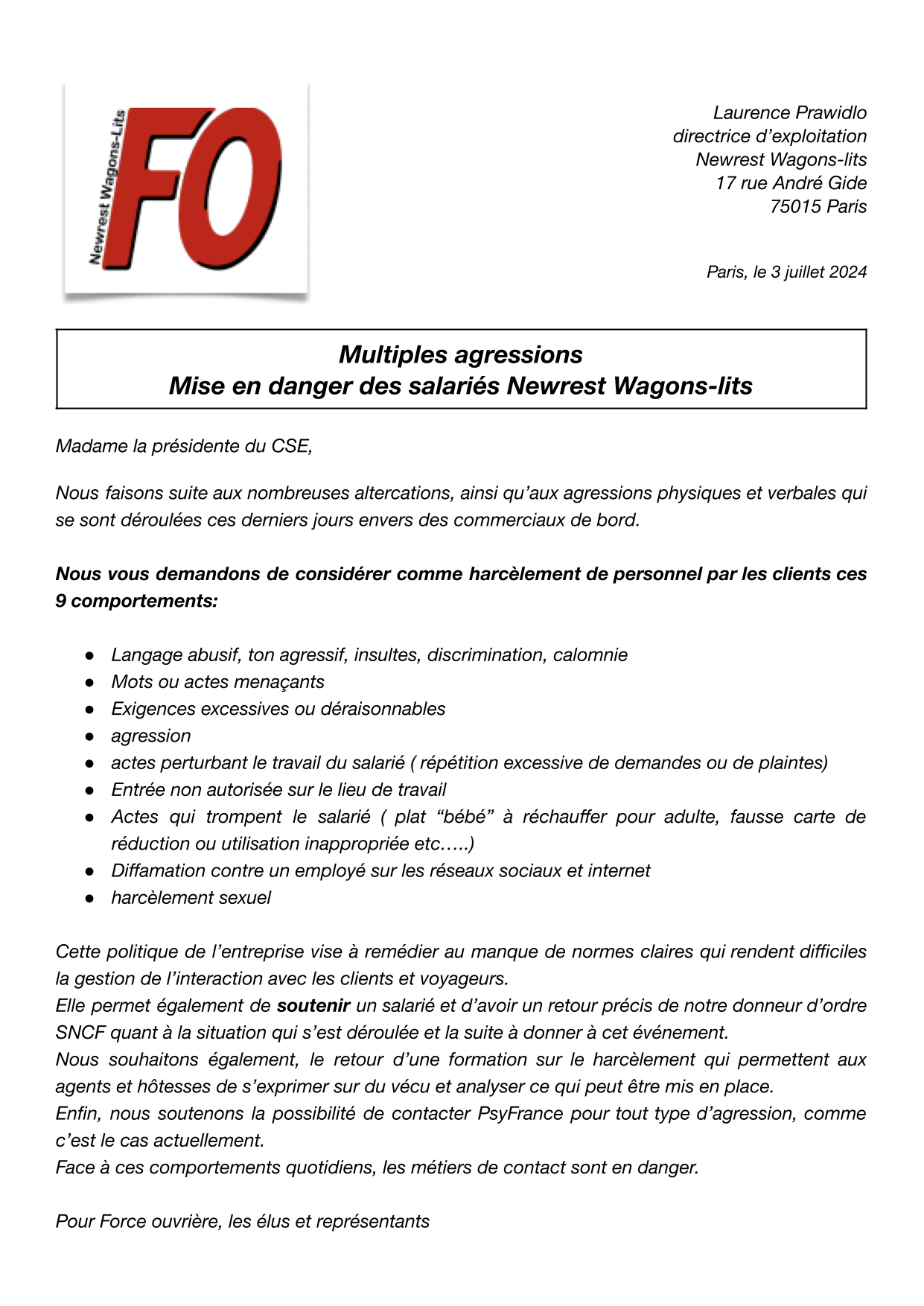 Pétition intersyndicale adressée au Premier ministre par l’intersyndicale :